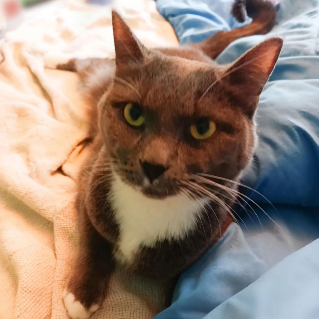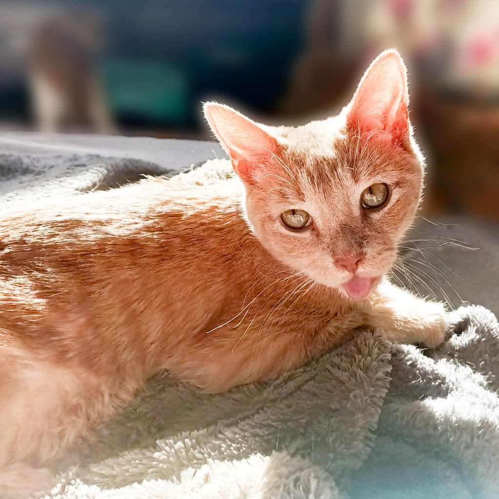 Timber is moderate CH and very independent! I adopted her on April 6, 2024 and she's 3 years old. She had a wonderful, loving family but sadly they had to make the decision to find her another home. Timber is a diva! She has HER pillow & HER kitty tower and nobody else is allowed to touch! She loves being held, Timber would let you snuggle her for hours.